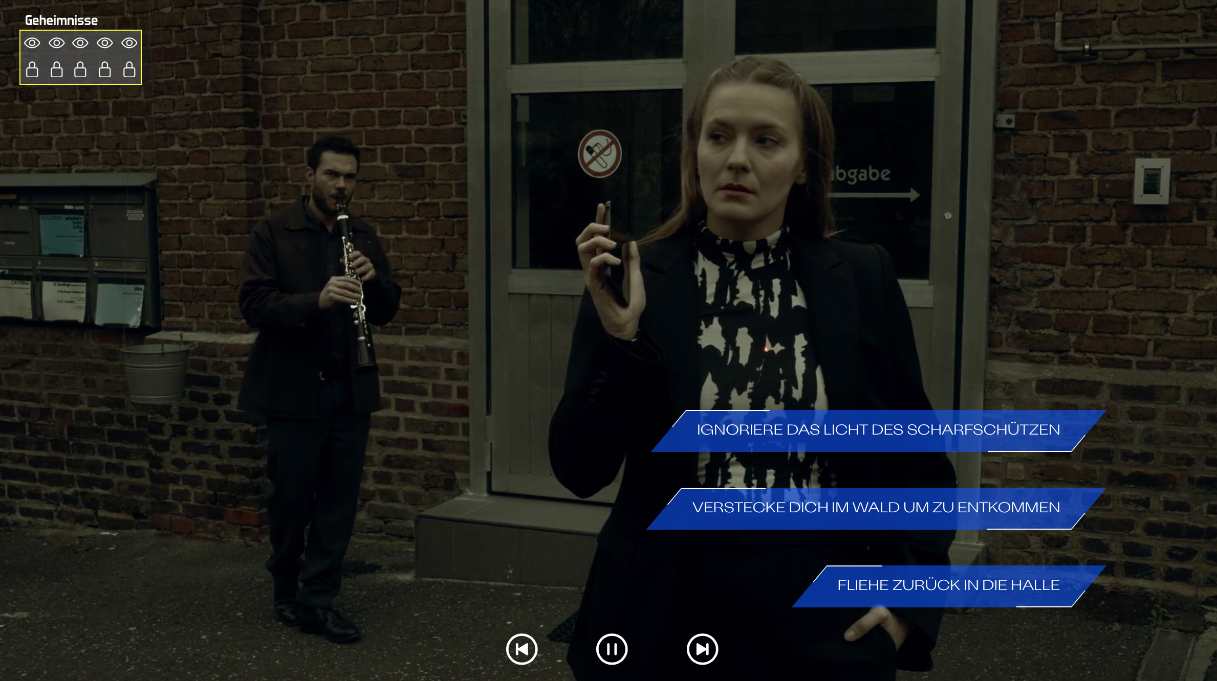 Hier triffst Du die Entscheidungen, wie die Handlung weitergeht.